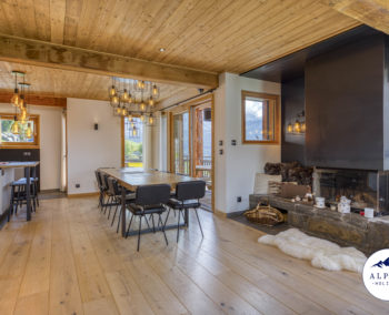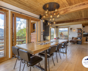 Ce chalet familial d’exception, construit récemment, allie le charme du bois et de la pierre à un confort moderne, le tout dans un environnement calme et ensoleillé offrant une vue spectaculaire sur les montagnes.