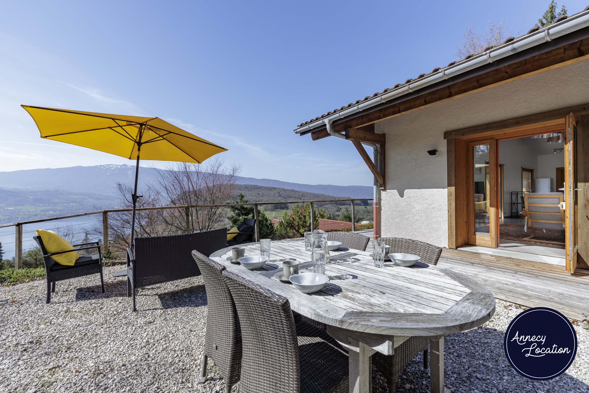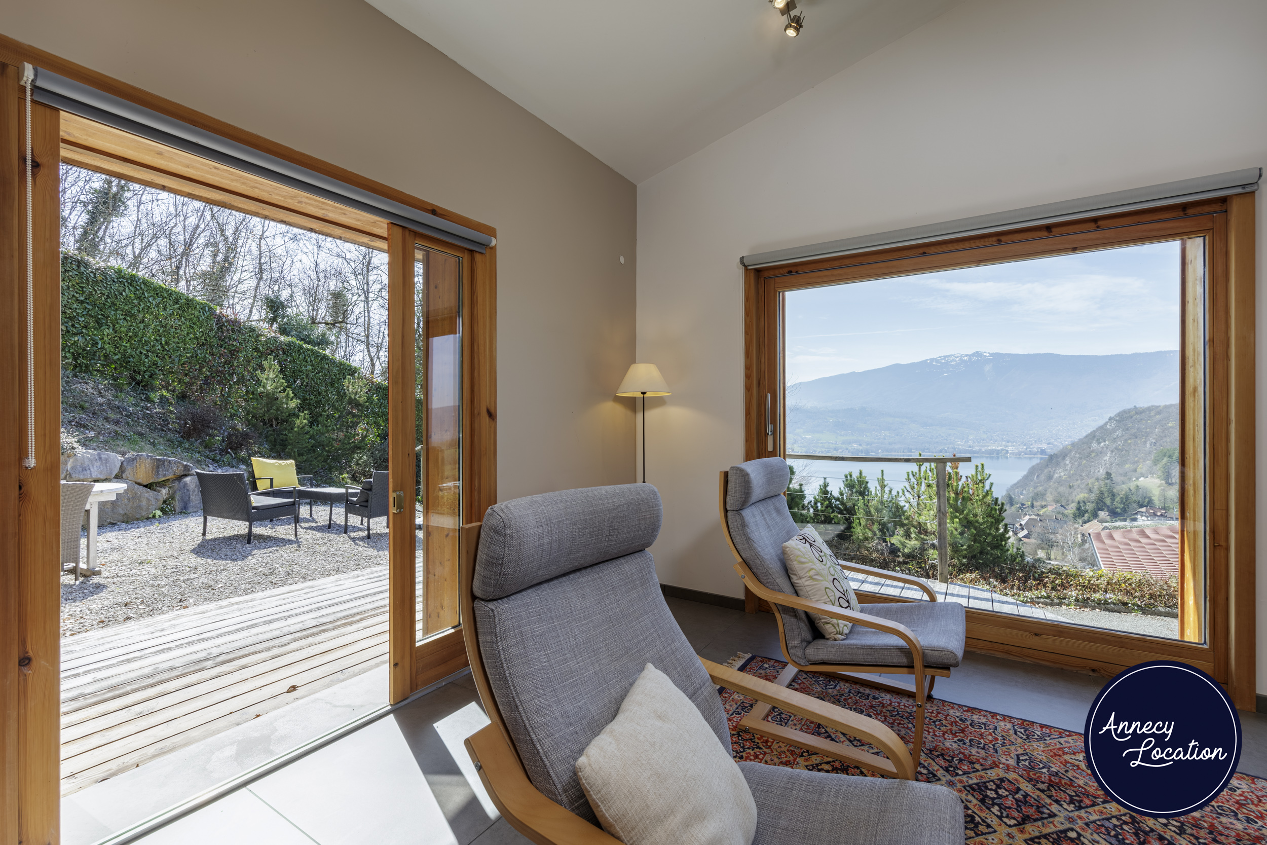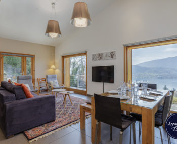 Overlooking Talloires Bay, this modern chalet offers spectacular lake and mountain views. Enjoy a large private terrace in a peaceful and serene setting — the perfect place to relax between lake and mountains.