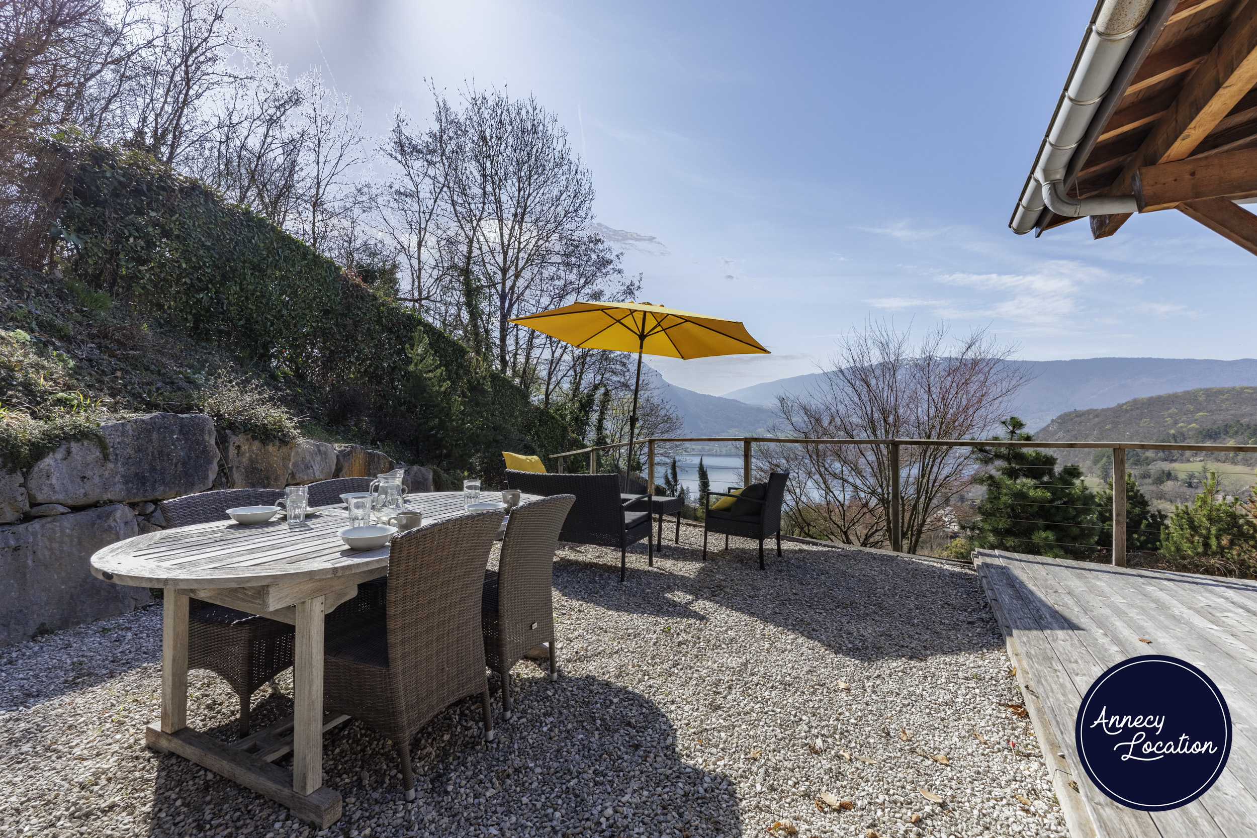 Large private terrace with panoramic lake views